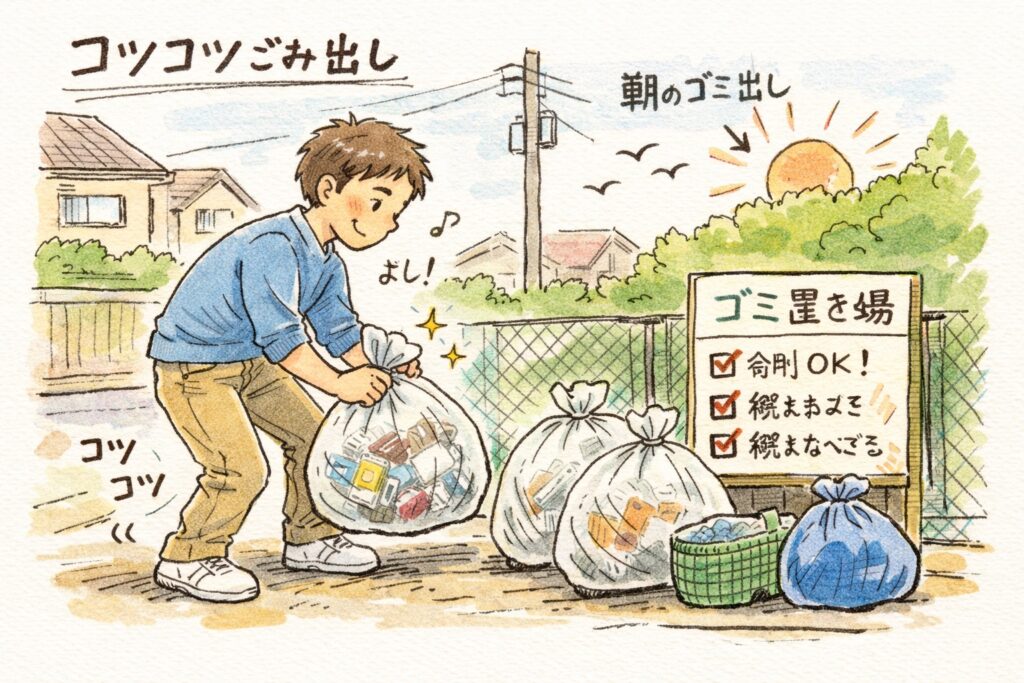 可燃・不燃ゴミ:指定のゴミ袋に入れ、週2〜3回の収集日に小出しにするだけで、最終的なボリュームは驚くほど減ります。