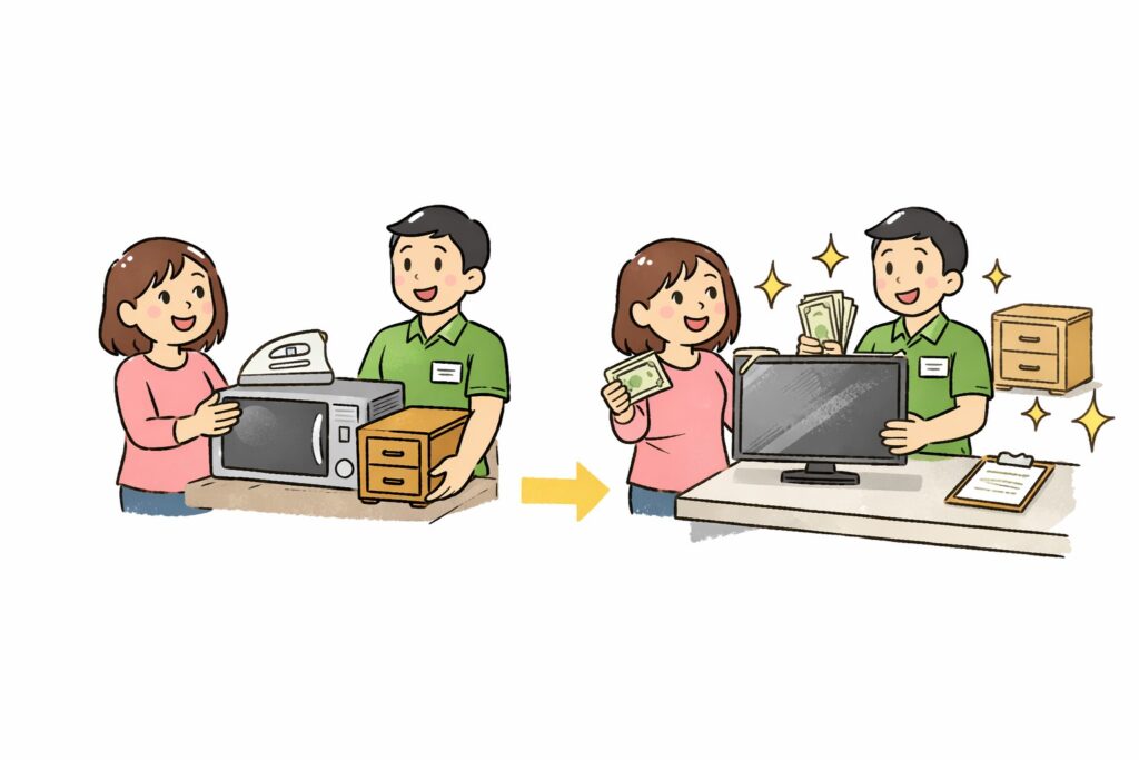家電製品や家具を新しく買い替える際は、販売店による下取りサービスを利用することで、処分の手間を省きつつ購入費用の一部を回収できます。多くの電器店や家具店では引き取りの条件や料金を提示しており、場合によっては無料で回収してもらえることもあります。特に家電リサイクル法の対象品目であるエアコンや冷蔵庫などは、下取りサービスを利用することで適切な形でリサイクルが行われます。買い替え計画に合わせて事前に条件を確認するとよいでしょう。