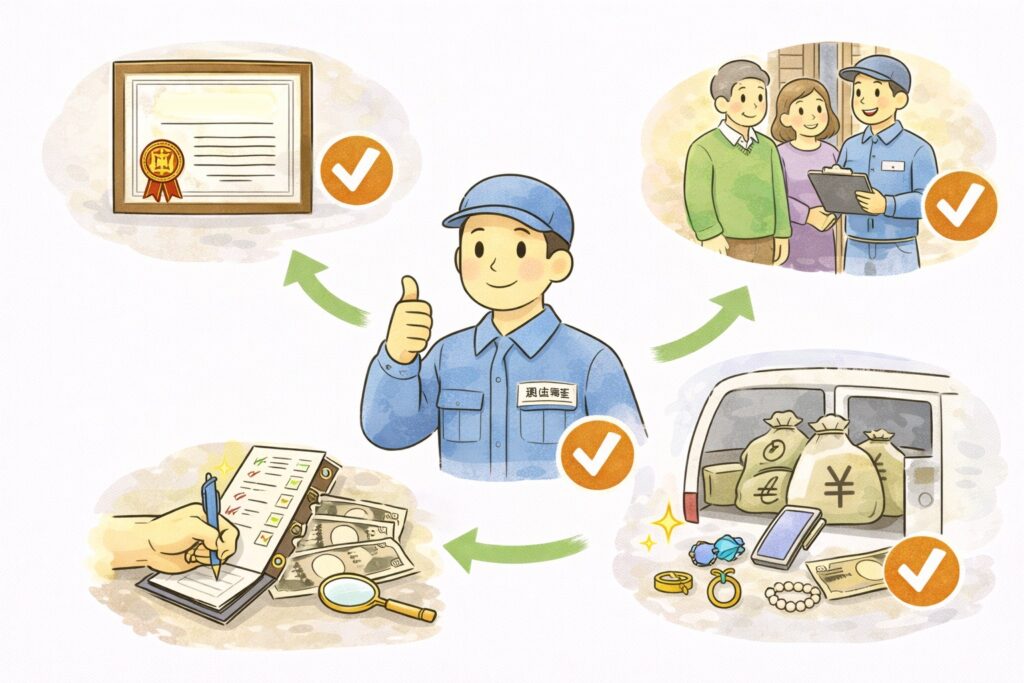 買取サービスがあるか: 処分するだけでなく、価値あるものを買い取って作業費用から差し引いてくれる業者は経済的です。