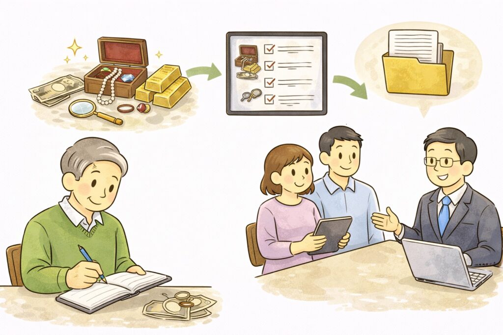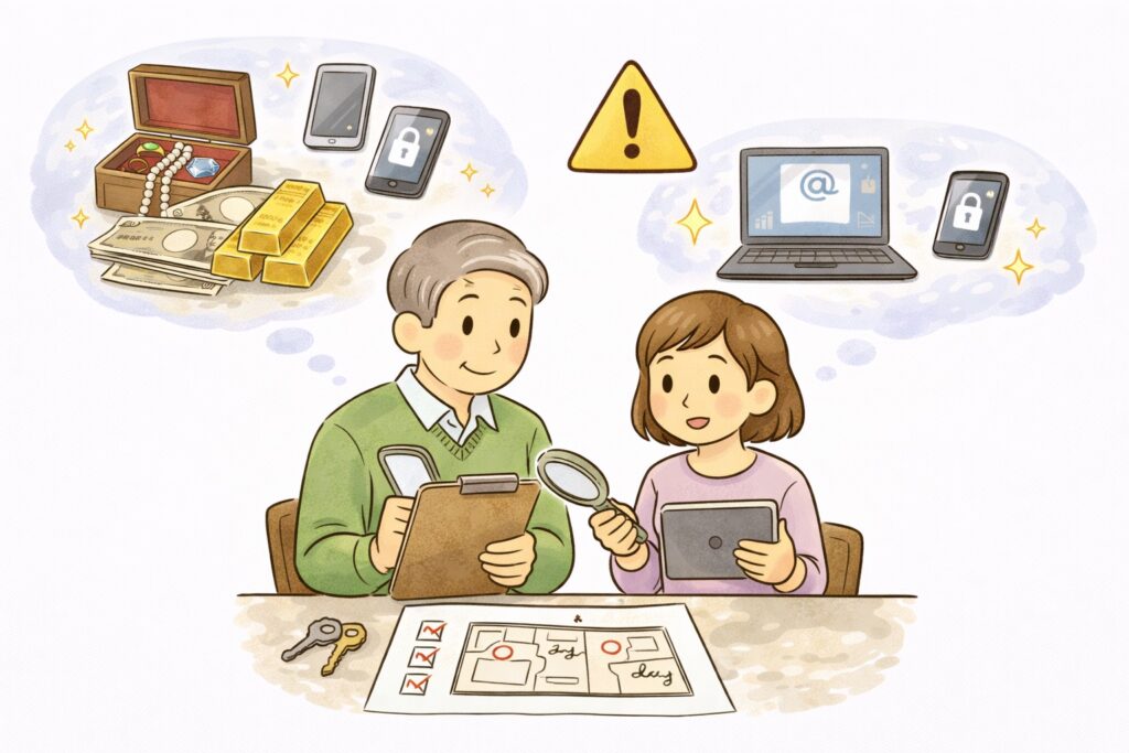 リスト作成: 品名、数量、発見日時、場所をエクセルやノートにまとめます。 これが後に、親族間での「言った・言わない」の争いを防ぐ最強の盾になります。