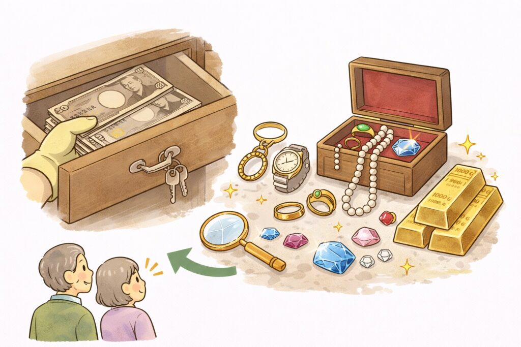 しかし、いざ作業を始めると「何がどこにあるのかわからない」「価値のあるものを見逃してしまわないか不安」という現実に直面することも少なくありません。タンスの奥に眠るへそくり、本棚に隠された重要書類、そして家族も知らなかった意外なコレクション……。