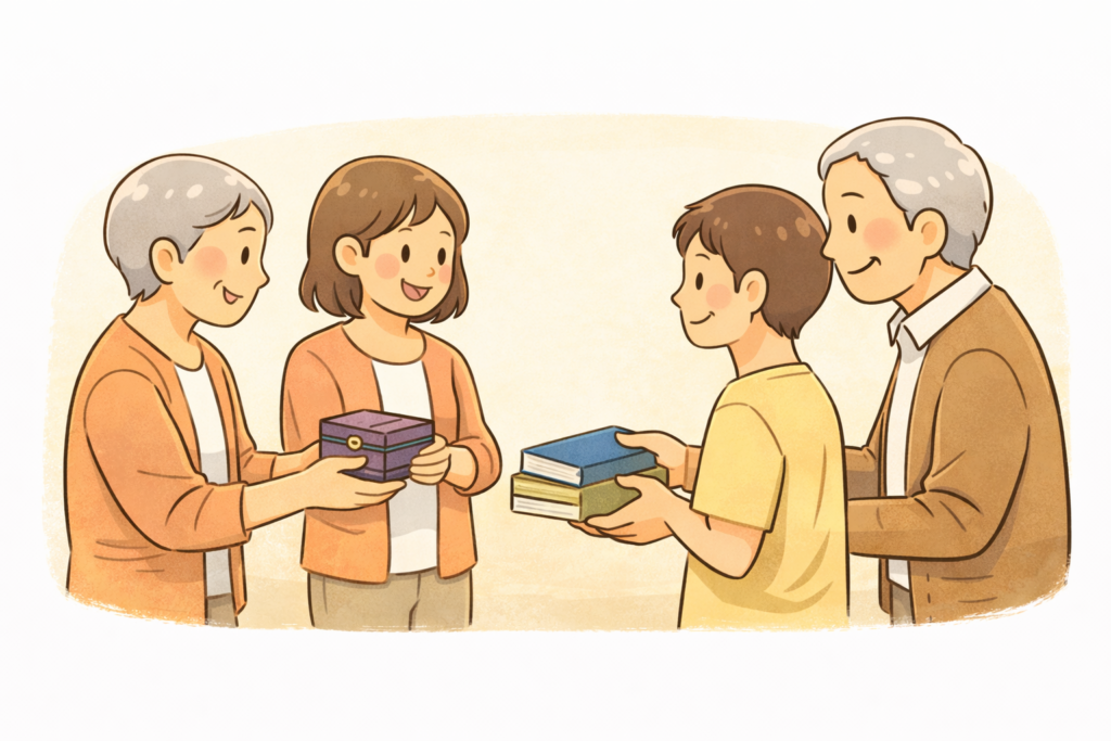 財産やモノの整理だけでなく、生前整理は「自分の思いをどう伝えるか」を考える良い機会でもあります。エンディングノートを活用し、自分の価値観や人生で得た教訓、家族への感謝の言葉を書き記すのもおすすめです。また、特定の持ち物に託した思い出やストーリーを子や孫に継いでもらうことで、形見が単なる物ではなく、家族の絆を深める特別な存在となります。このように、思いや記憶を明確な形にして残すことで、家族があなたをより深く理解し、思い出とともに前に進むきっかけになります。