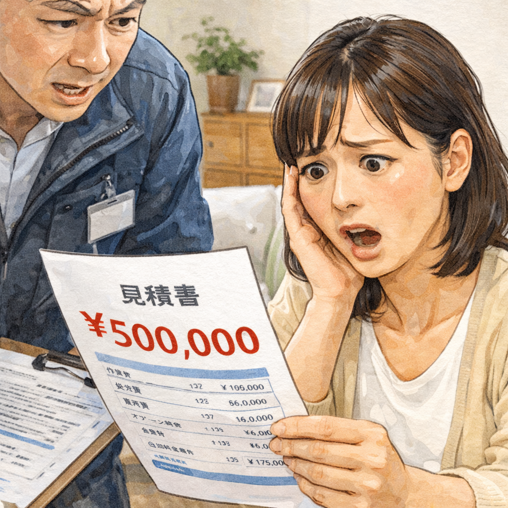 「作業一式 〇〇円」という1行だけの見積もりは、後から「これは別料金です」と言い逃れをする余地を与えてしまいます。透明性のない見積もりは、作業の不透明さそのものです。