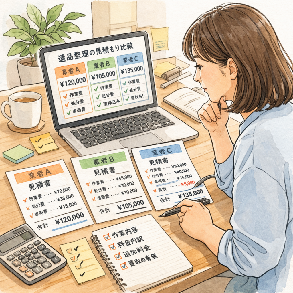 遺品整理のトラブルで最も多いのは、実は「見積もり段階での確認不足」に起因するものです。この記事では、見積もり比較のポイントから危険な業者の見分け方まで徹底解説します。