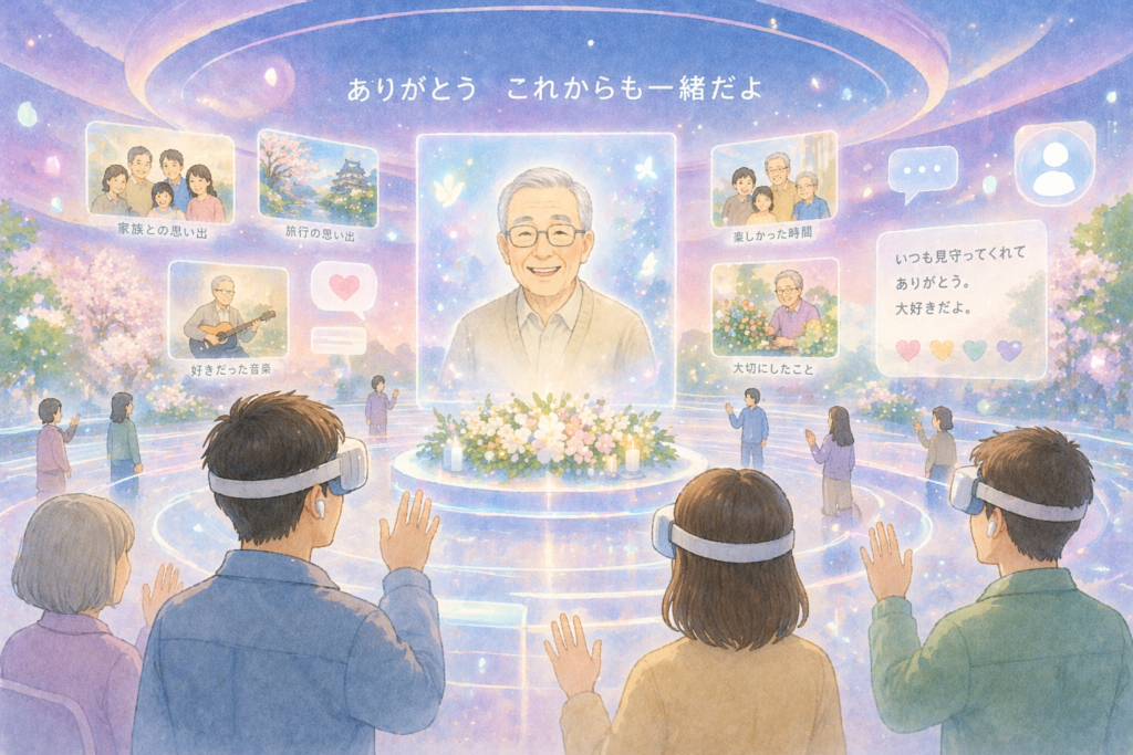 AI技術の進歩により、故人との再会を仮想的に体験できる「生成AI」が注目されています。例えば、AIアバターやデジタルツインを活用すれば、生前の発言や表情の特徴を再現し、故人と対話する感覚を得られるサービスが提供されています。家族や友人が故人との思い出を共有したり、心の距離を再び縮めることができます。こうした技術は、悲しみを和らげる心理的なサポートとしても価値があり、終活における新しいアプローチとして評価されています。