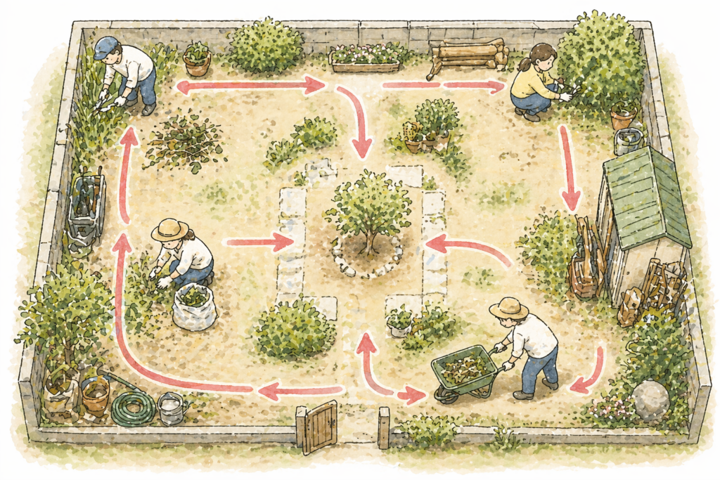 最初にやるべきことは、庭全体・